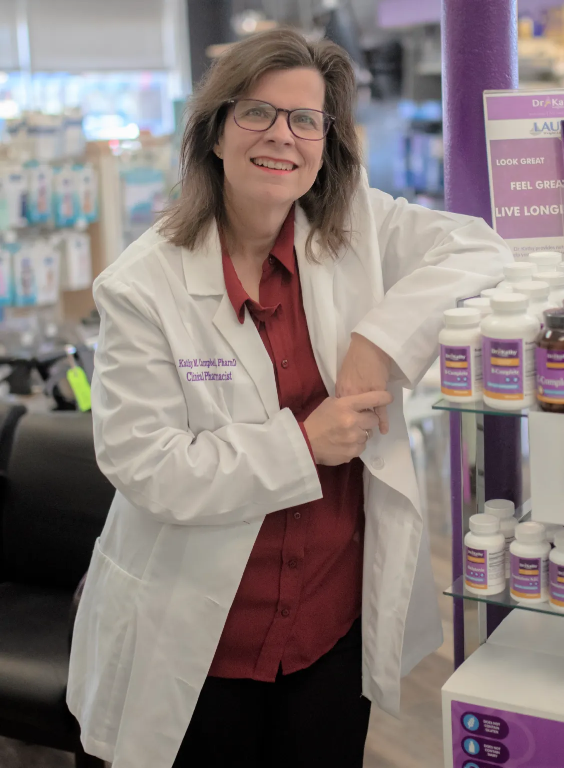 Dr. Kathy is a medication specialist dedicated to helping you need less of it.